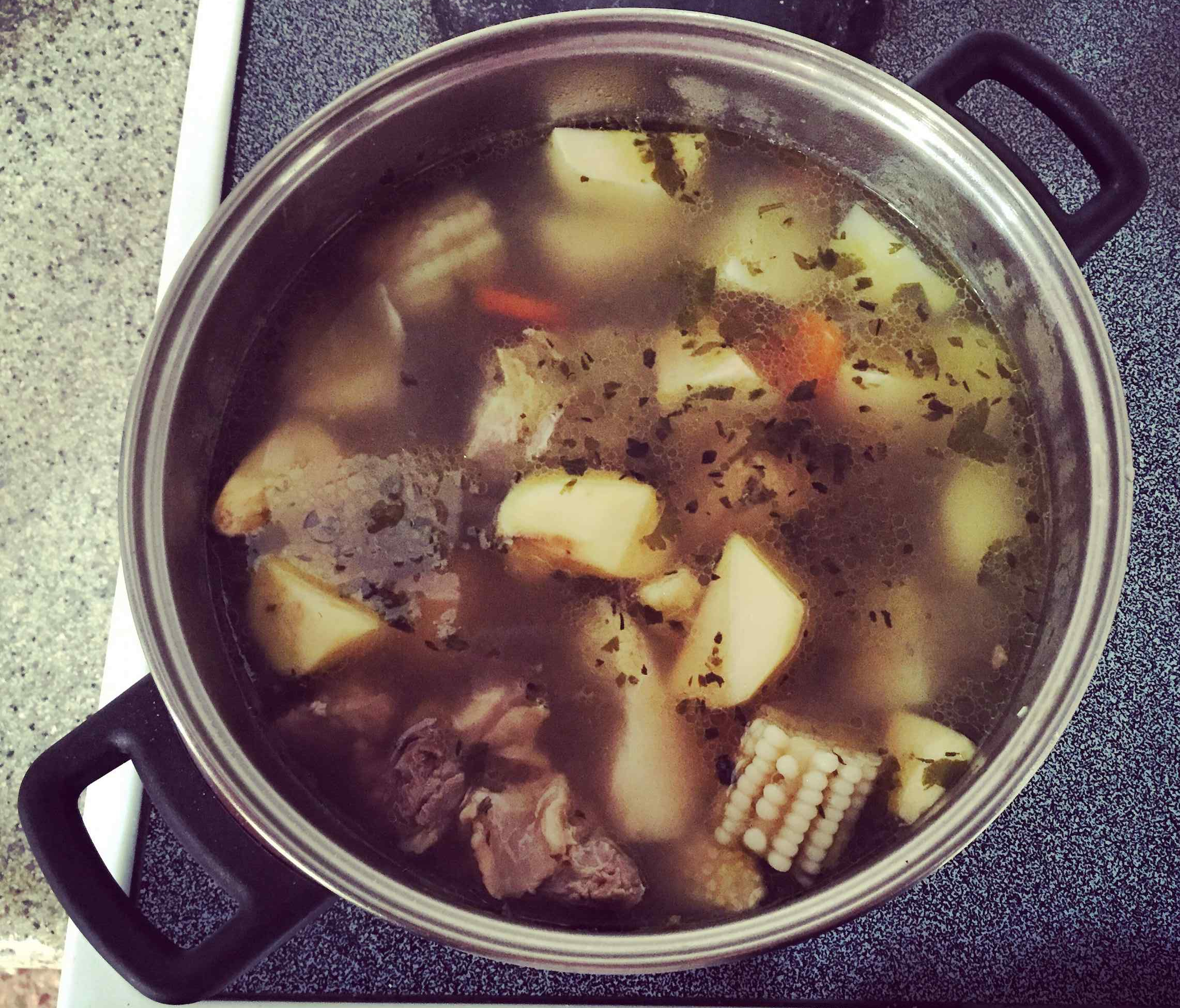 Olla de Carne is a healthy and hearty beef stew with vegetables, a Costa Rican comfort food. You will find vegetables like potatoes, carrots, ayote (similar to pumpkin), sweet potato, yucca, green plantains and corn. A side of rice is always served with it.